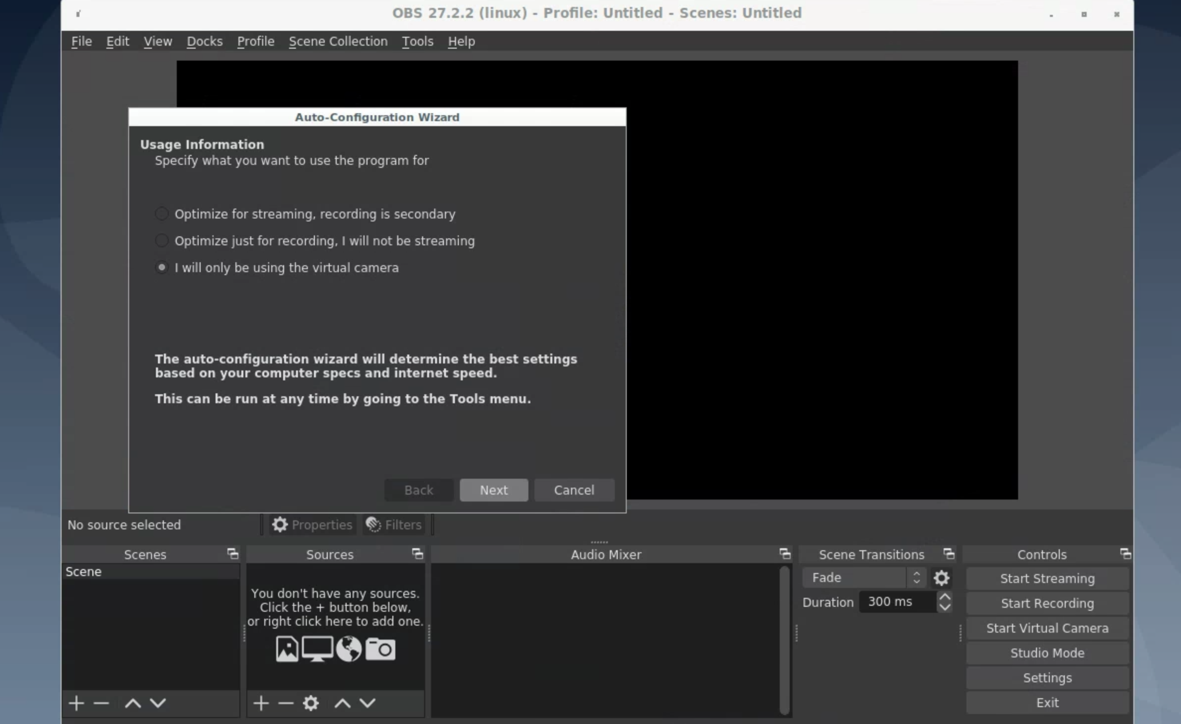 Beim ersten Start von OBS
